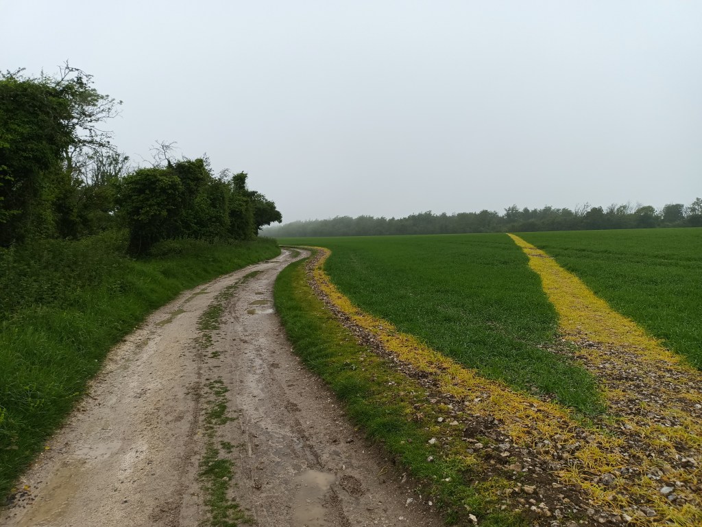 When the rain eased off a bit I headed up Sutton Down and along a hard flint (probably Roman Road) road which past the village of Bignor where there is a Roman Villa. That would be the highest point of the day so it was flat and downhill over the rest of the trek. The trail continued fairly