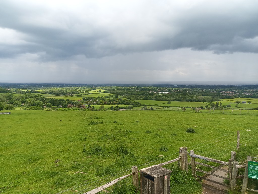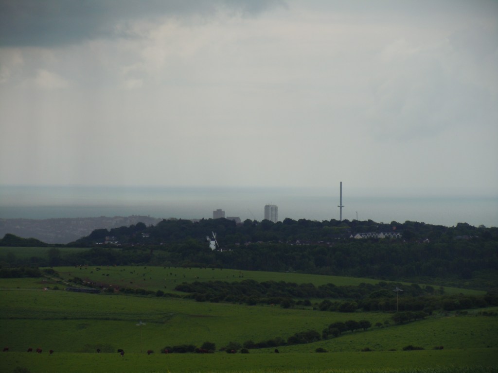 Raisin Cake and a cup of tea. It started to shower a bit so I put my mac on and headed up the hill and down into Pyecombe. This is a very quiet place cut off from the world by the old and new A23. I never really came here as a kid, might have cycled around it once or twice and maybe driven through it but it was nice to take it in. There are some very lovely houses here built from the old smithy and school. You cross over the A23 and then head up into another part of the village which has a church looking similar to Clayton Church. I then spent as bit of time trying to cross the old A23 now A273 before walking up through the golf course. At the top I turned left past a barn with a blacksmith hard at work. I said hello to a woman cleaning out the stables and we had a chat about Hassocks and what it has become before I found out she also went to the same school I did but many