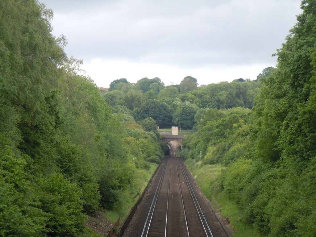 The campsite is along a frighteningly fast road with no verge to walk on so I took a different route along the old cinder track running parallel to the railway. I got to the old bridge we used to stop at as kids and like then I waved to a passing train which gave me a toot back. I then headed over some fields making