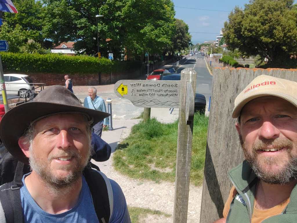 Eventually we got to Birling Gap and I got some food, drink and an ice lolly for the both of us. Having a good rest we then climbed up the next hill towards Belle Tout Lighthouse. Down again we went and then up our last hill for the trip towards Beachy Head. We contemplated stopping at the top but the end was in sight and I wanted to push on. The last mile went quickly before we descended sharply down towards the finish where the sign post declared 100 miles to Winchester.