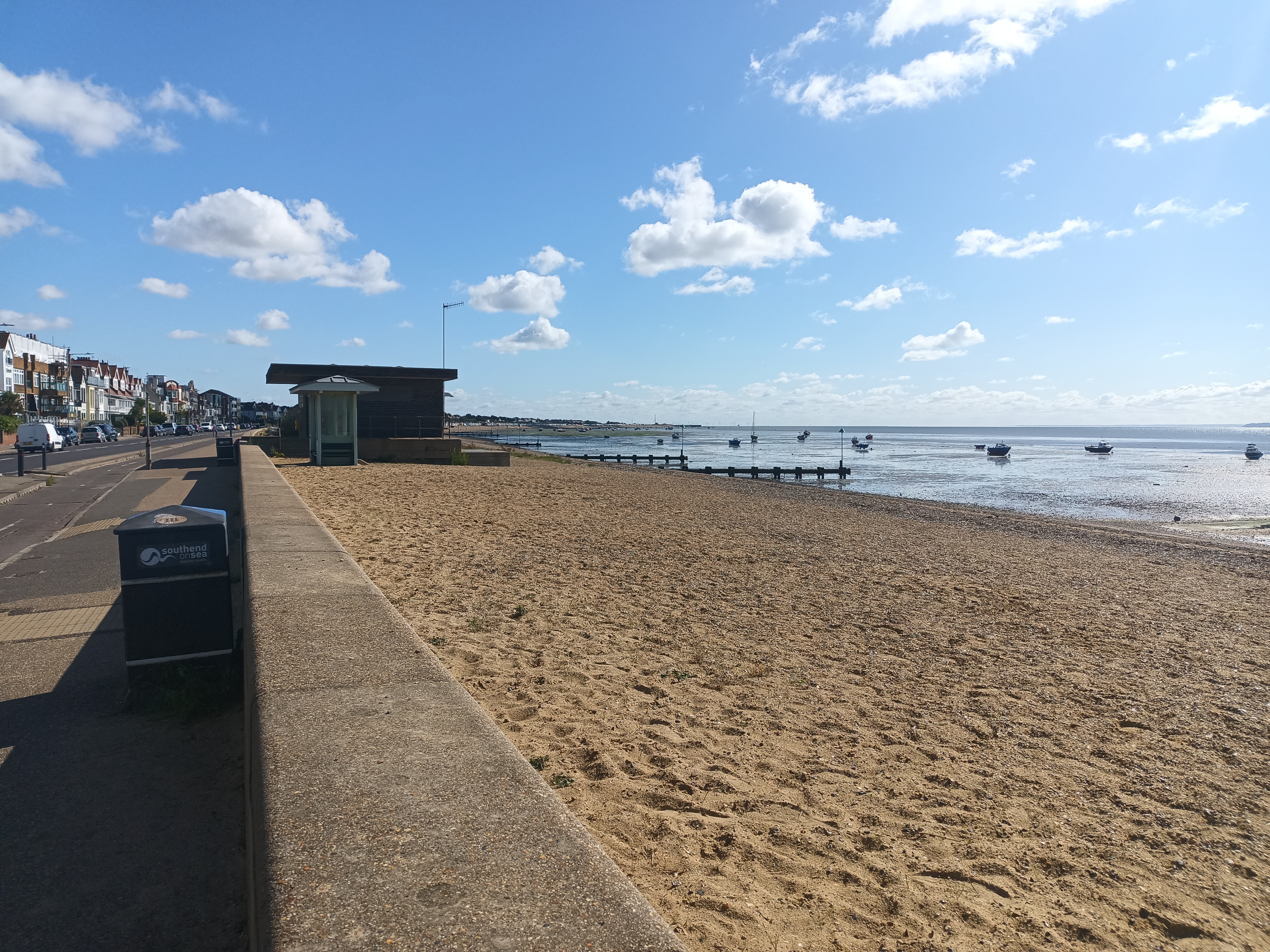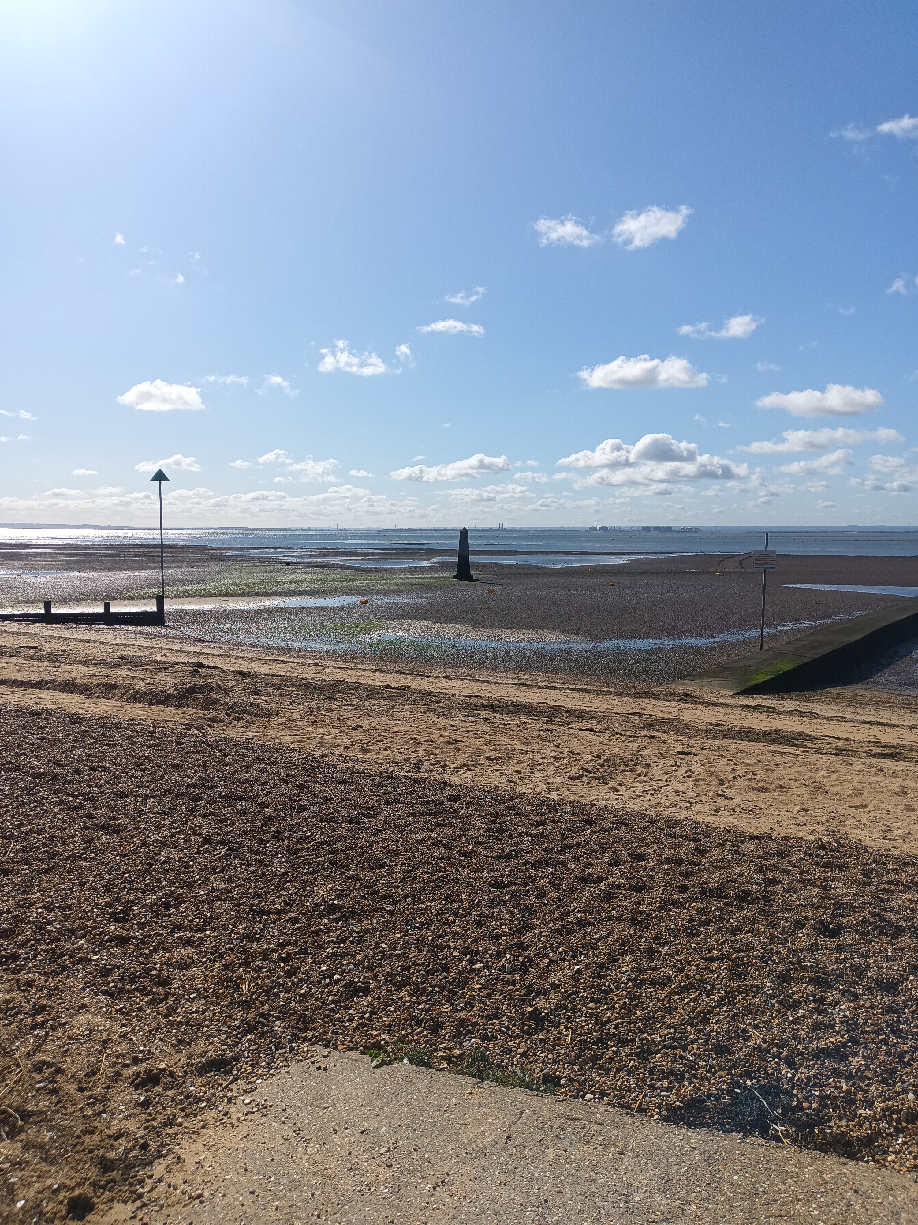 From here it is a straight walk beside the rail track down past Chalkwell station into the area known as Chalkwell Bay. The path widens here with a cycle track and the road nearby. It is always fairly busy here on a sunny day, plenty of families with their kids, runners and dog walkers. As you continue on the route you will notice the ‘Crowstone’. This marks the end of London’s jurisdiction over the Thames.