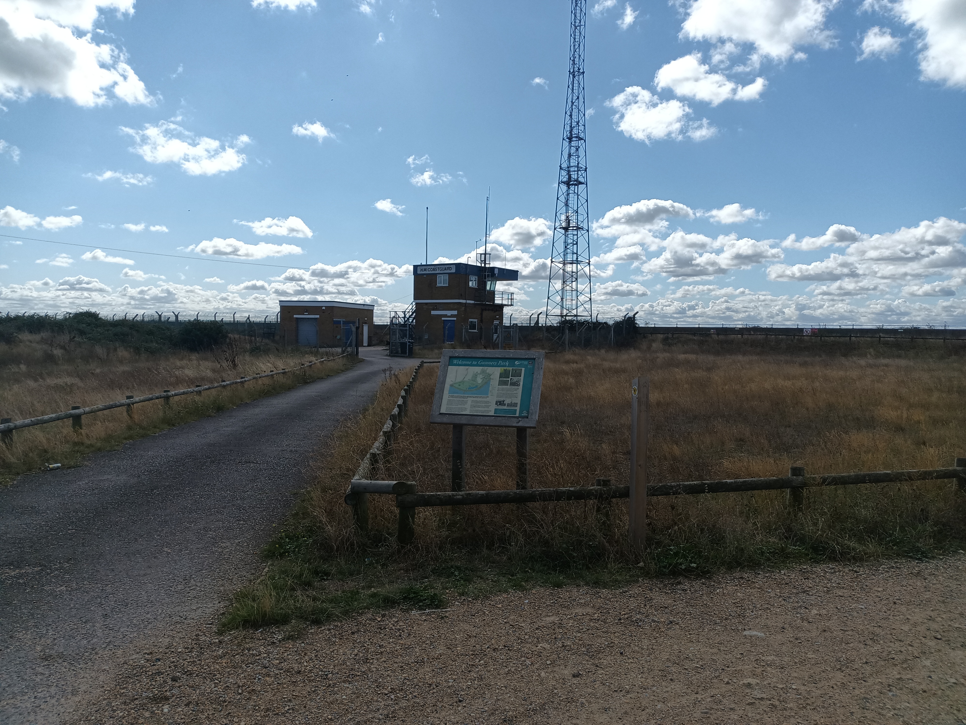 Going on past Uncle Tom’s cabin you find you cannot go any further by the beach. It is closed off by the Ministry of Defence due to the possibility of unexploded ordnance from the original ranges at the old Shoebury Garrison. Instead you have to head to the left and then through gates towards the Coastguard tower before re-joining the path.