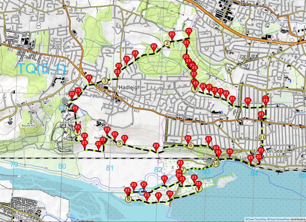 Only just over 2 months to go before the North Downs Way walk so it is about time I got back into walking shape. I decided that I would do a bit more of the Saffron Trail from Belfairs Wood down to Leigh On Sea where it meets the Coastal Path. When planning this I realised that I had missed a bit of the coastal path in my previous walks by not going around Two Tree Island, so I factored that in as well. All in all a 12 mile walk with some nice steep hills to get the blood pumping through the leg muscles again.