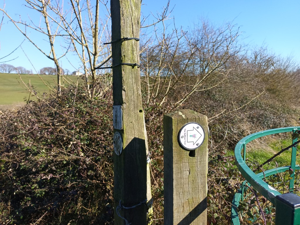 Round the back of the castle the path continues past a Saffron Trail marker before making it’s way gently downwards once again. The Saffron Trail then peels away from the main path to the Station and heads back up steeply to the road. From here you can walk parallel to the old trail before heading back down to the station.