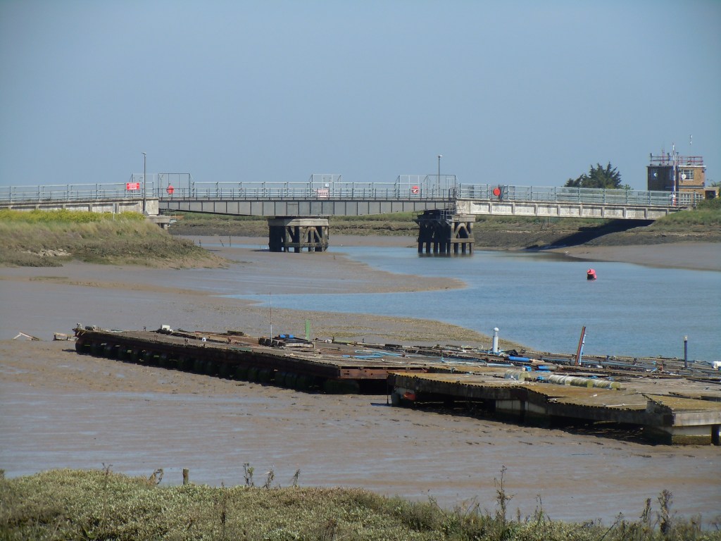 From this point onwards I think I only passed 4 people till I got to the creek! Amazingly quiet. I imagine that Wakering Common is usually full of dog walkers but I only see one. There look to be lots of lovely trails off the main route into wooded areas but I head straight on the trail. You reach a gate and the trail heads left up a road towards Oxenham Farm with a stream beside you. Walking through the farm you turn right and head towards the sea wall. From here you can see the bridge which goes over to Havengore Island, part of which is MOD owned.