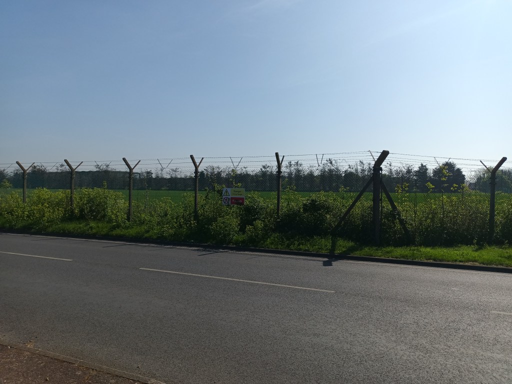 From here you continue North up the road with houses on one side and the MOD facility on the other.