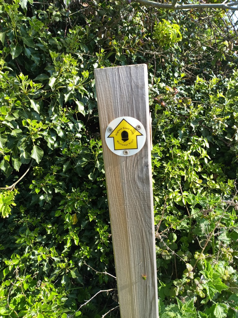 The houses end and you walk along a fairly narrow, slightly overgrown pavement beside the road. Reassuringly I see my first Coastal Path sign.