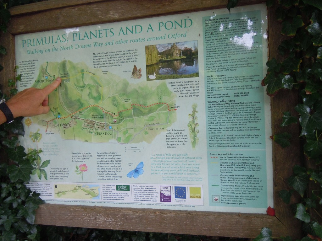 Rob and Ii got up early and headed down to breakfast. We packed up and then headed back to Dunton Green on the train from Sevenoaks. At Dunton Green we re-joined the trail and headed over some farm lands. We head into Otford a nice looking place that I have driven through once or twice. It is here we head up out first steep climb. It certainly got the sweat flowing and by the top I actually feel less tired than I did when I woke up. There are some great views as we go over Kemsing Down and head into Wrotham. The day is cool and there is rain in the air. Very welcome after yesterday.