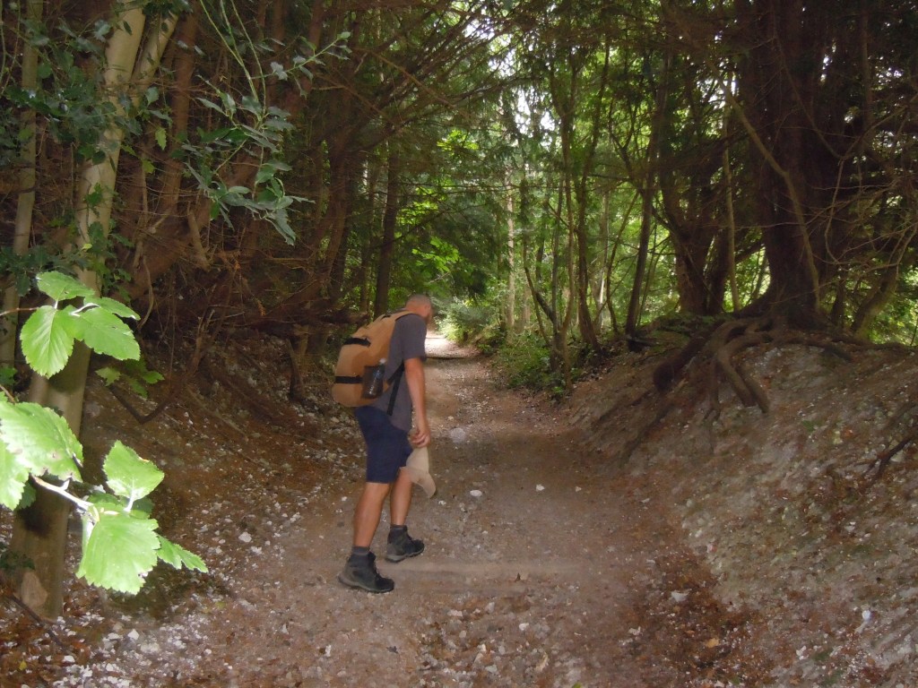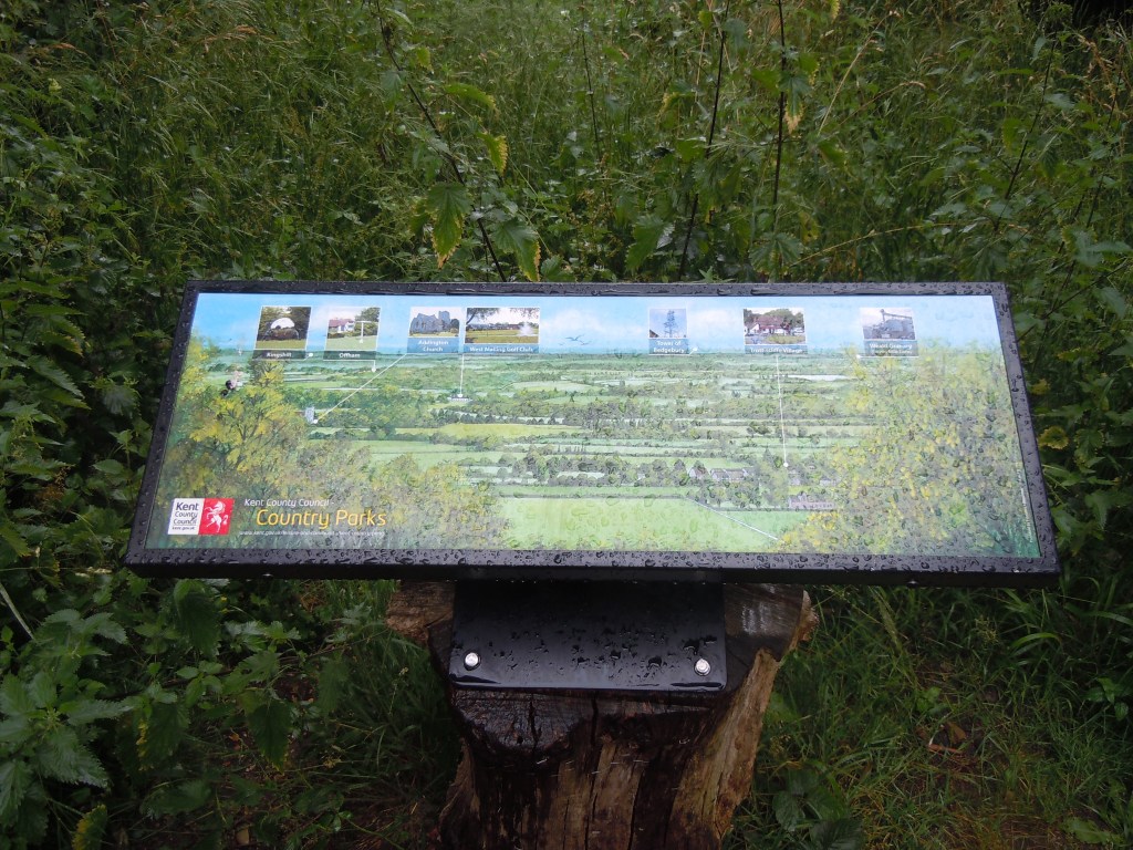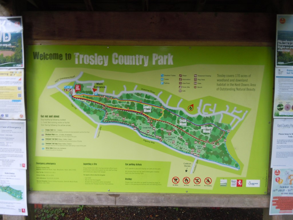 We head through the outskirts of Wrotham with the hum of the M20 increasing. Eventually we head over it and turn down to join up with the Pilgrim’s Way. The path criss crosses the lane before eventually heading steeply up towards Trosley Country Park. The rain is coming down now and somehow we miss the turn and head around to come into our lunch spot from the other side. Rob is heading home from here and we have lunch before parting.