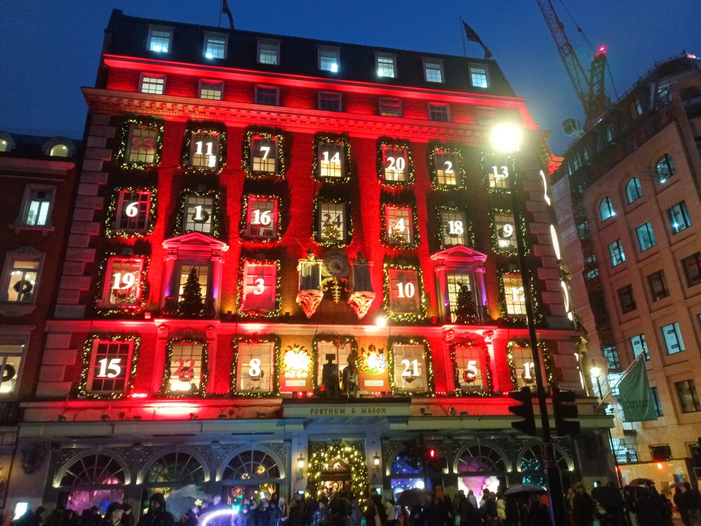 Fortnum and Mason was packed but we weren’t here to go in, so I crossed the road to take a photo. The building was done up like an advent calendar with numbers on all the windows. Close by was the entrance to Piccadilly Arcade, a quick snap and then a look at the Royal Academy. This was not on my list but looked impressive. Just next to it was Burlington Arcade, you would probably need a mortgage to shop here.