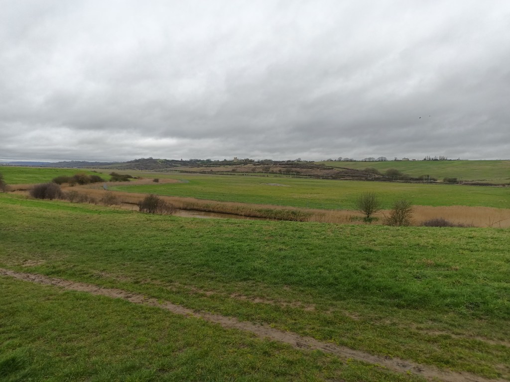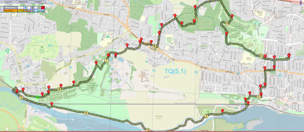 Heading up the hills through Hadleigh Castle Country Park certainly got the blood pumping. Slight nagging in one calf. Made it to the visitors centre and had a sausage roll and a coffee.