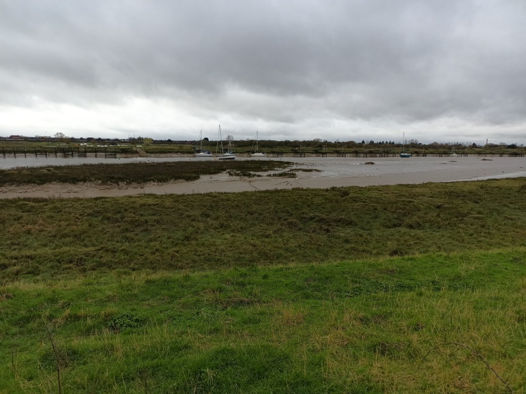 Roughly 12 miles. Quite blowy at first walking down to the estuary. Had to put on my mac to keep the wind off as it was quite cold. On the coastal path I think I met one other person in total, very quiet. Not too muddy either. Made it to Benfleet Station, considered getting the train home! Pushed myself on though, cannot be that unfit.